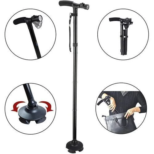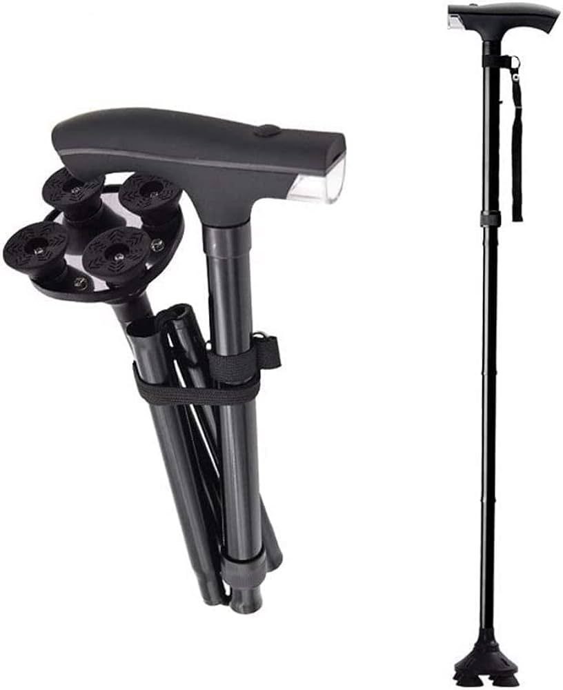 بغيتي تهدي الراحة والأمان لوالديك؟ هاد العكاز المتطور ماشي غير عصا عادية، هو سند حقيقي كيتطوى بكل سهولة، فيه ضو LED باش ينور الطريق فليل، وقاعدة ثابتة كتمنع الانزلاق. خفيف، صحيح، ومصمم باش يرافقهم فين ما مشاو بكل ثقة!”
