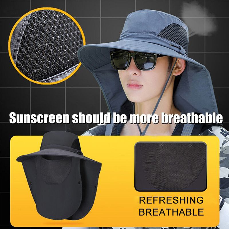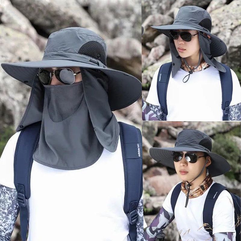 ✅ حماية شاملة 360 درجة: كتغطي الراس، الوجه، والأذنين، وحتى العنق من الخلف، باش تحميك تماماً من الأشعة فوق البنفسجية.