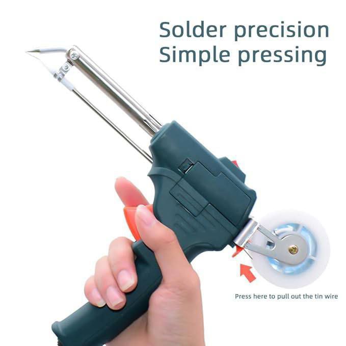 ✋ استخدام بيد واحدة: التصميم على شكل مسدس (Gun) كيخليك تتحكم فعملية اللحام بيد وحدة، وكتدفع سلك اللحام بضغطة زر بسيطة.