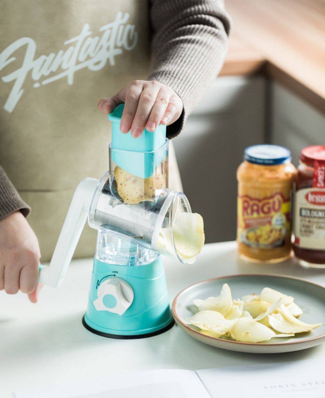 ✅ 3 وظائف ف أداة واحدة: كتجي مع 3 رؤوس (شفرات) من الإينوكس قابلة للتغيير: وحدة للتقطيع لشرائح (Slicer)، وحدة للبشر الغليظ، ووحدة للبشر الرقيق.